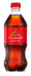 La parte del MEG, un alcohol, es lo que Coca Cola ya ha conseguido sustituir utilizando caña de azúcar de Brasil en sus botellas con el sello “plantbottel” (en la imagen). Este envase esta hecho en un 30% a partir de vegetales y 100% reciclable.